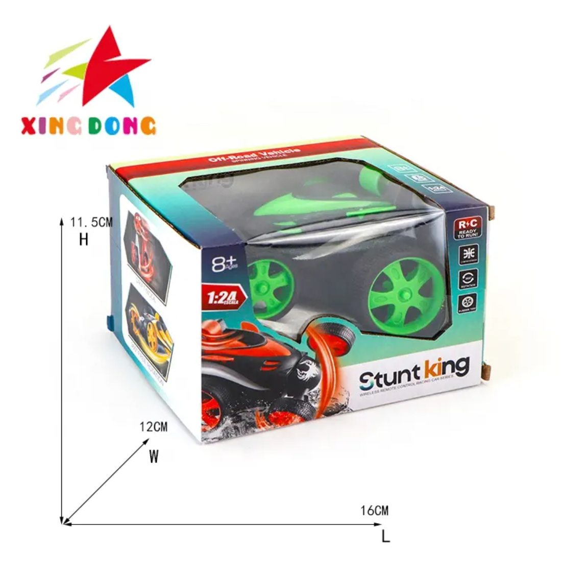 Contenido del Paquete: 1 Carro Acrobático RC (Radio Control) y 1 Control Remoto Clásico.