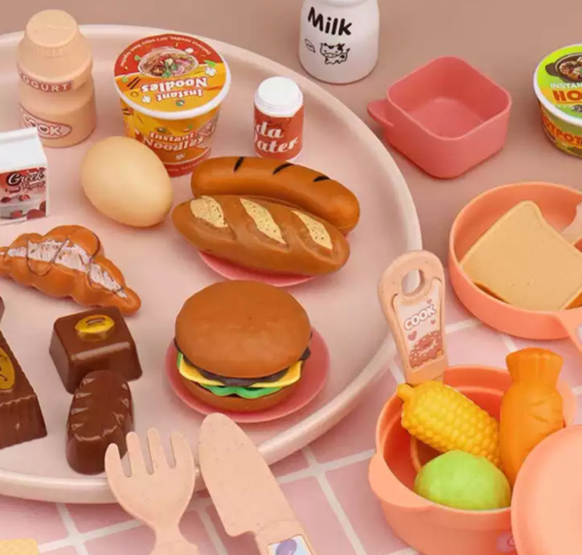Set Completo: Incluye ollas, sartenes, utensilios y alimentos de juguete, lo que permite un juego continuo y creativo.