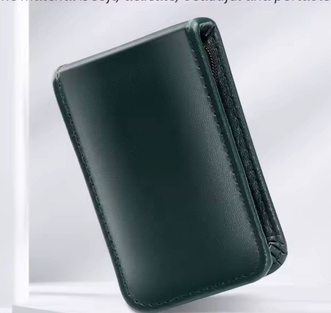 Diseño Compacto y Elegante: Viene en un estuche de cuero con cremallera (color Verde Oscuro o Esmeralda) que puedes llevar en la cartera o mochila.