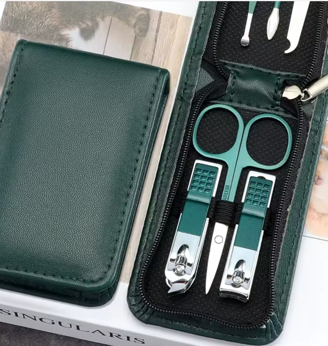¡La herramienta de ley que necesitas para una manicura y pedicura profesional en casa o de viaje! Este set de cuidado total combina acero al carbono de alta calidad (dureza y filo duradero) con un diseño portátil y elegante. Mantén tus manos, pies y rostro impecables sin gastar una fortuna en el spa.